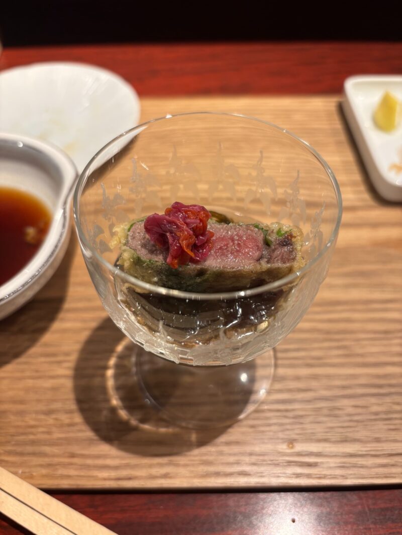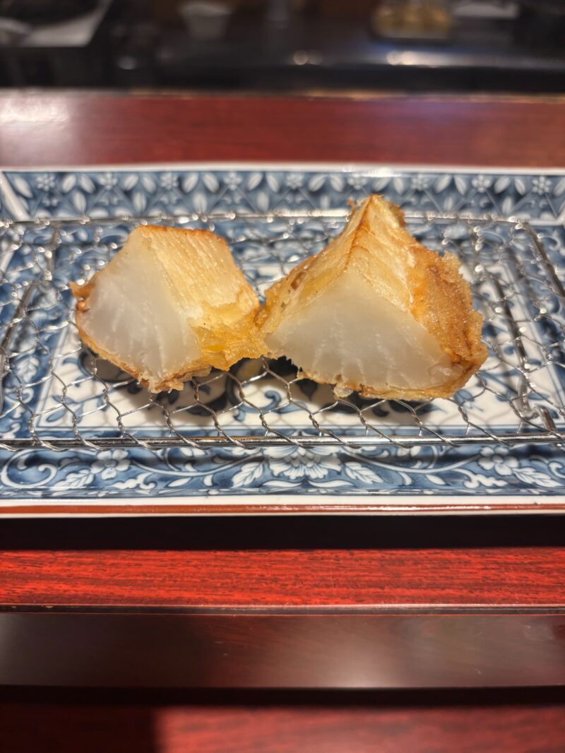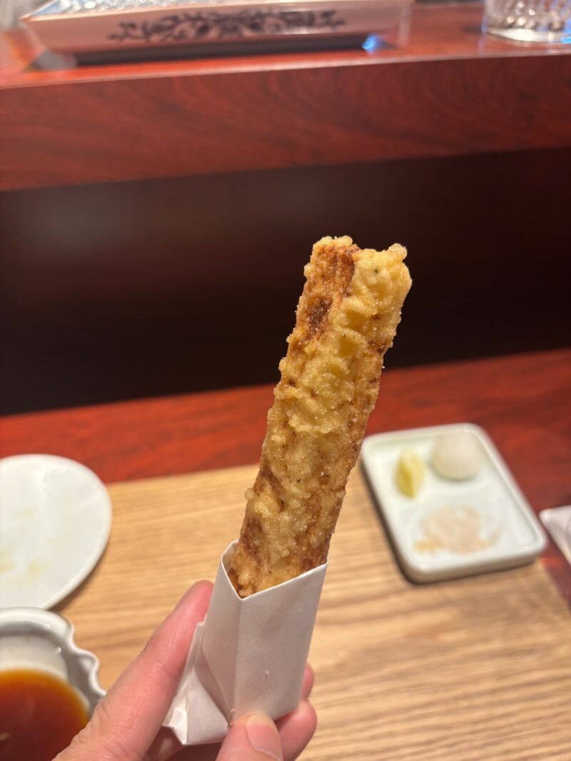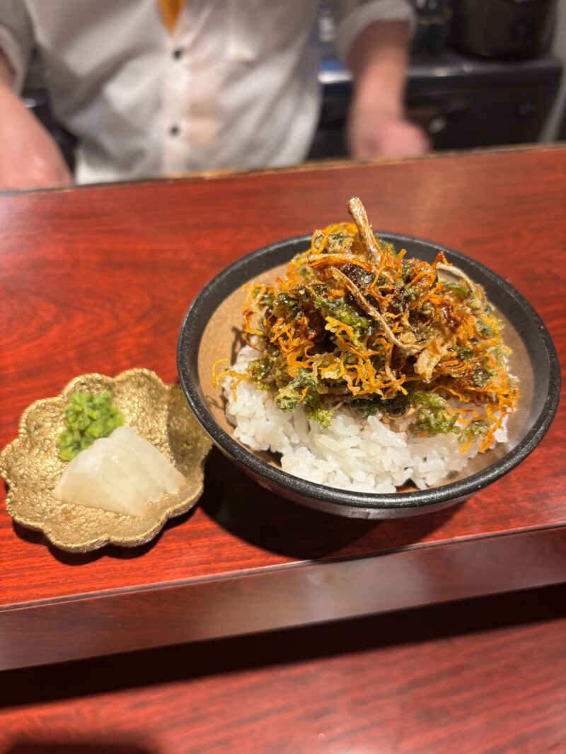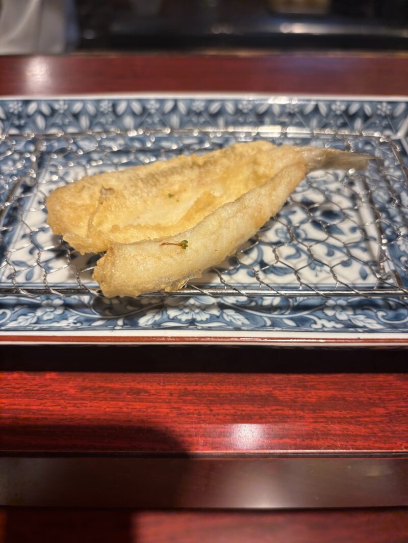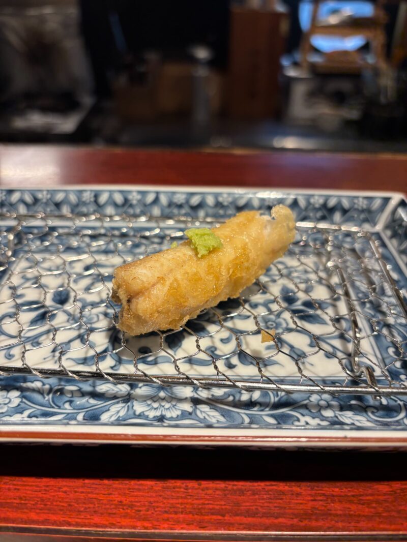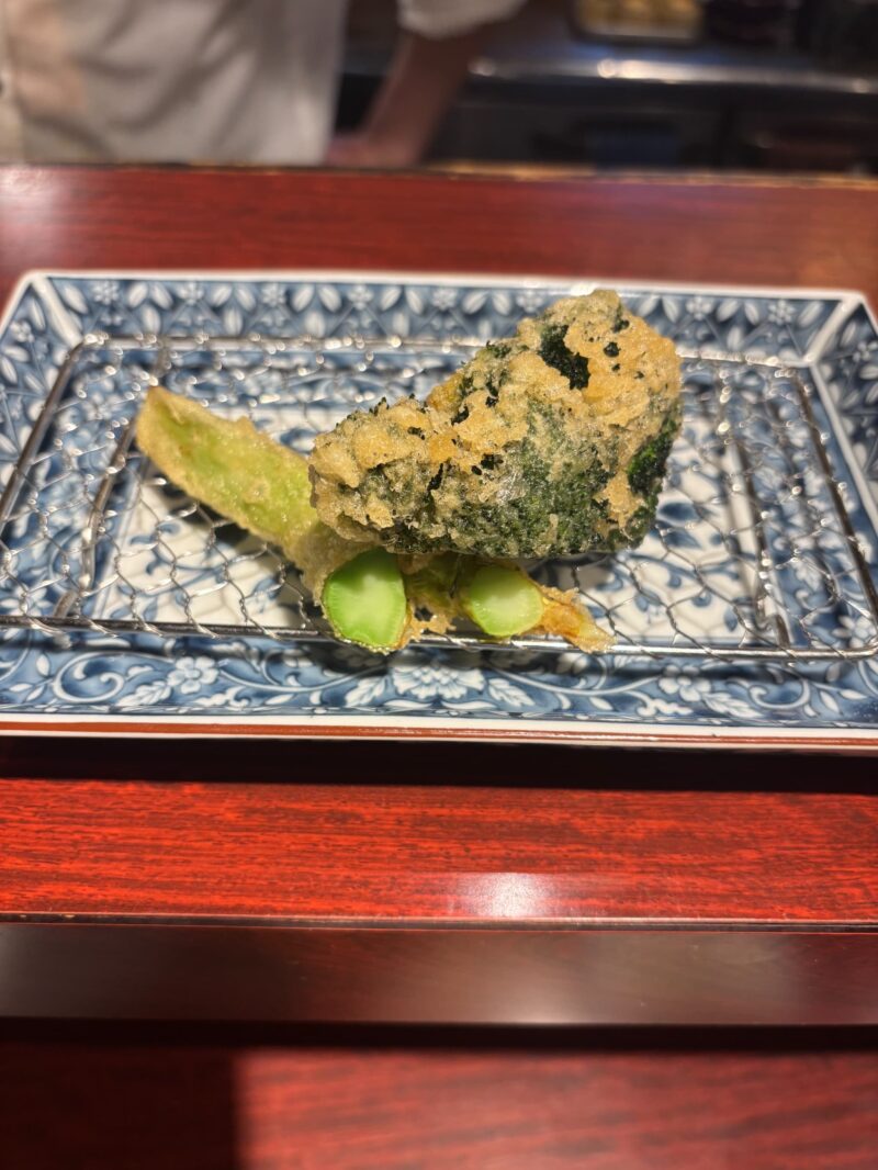 天然の舞茸は今まで食べた中でダントツに美味しく強烈な香りが印象的だった。しかし今回のベストは、鯖でしょう。大葉に挟まれたレアなものとしっかり揚げられた2種類の鯖の食べ比べ素晴らしかった。